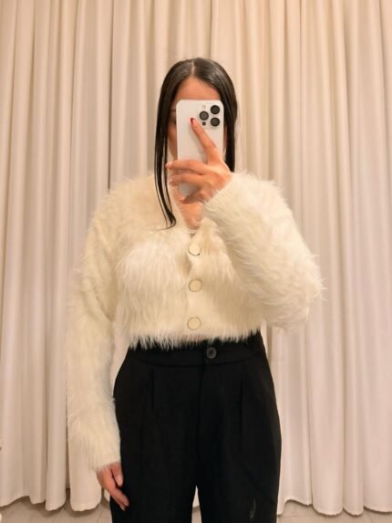 Peluş Hırka Standart Beden – Beyaz