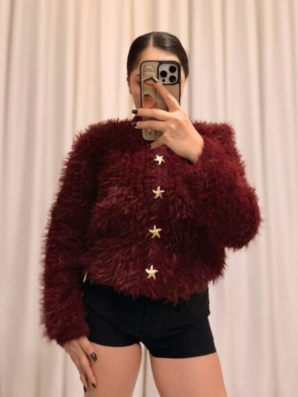 Peluş Hırka Standart Beden – Bordo