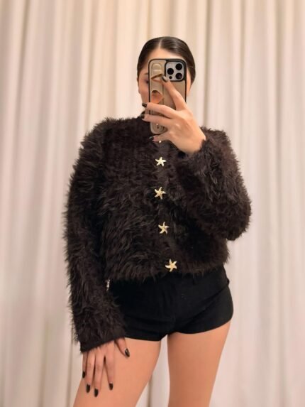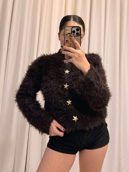 Peluş Hırka Standart Beden – Kahve