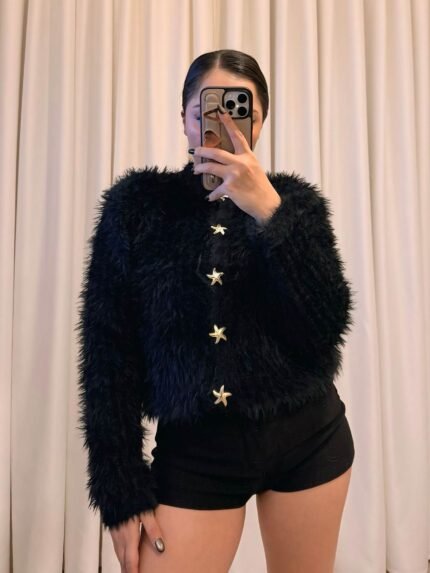 Peluş Hırka Standart Beden – Siyah