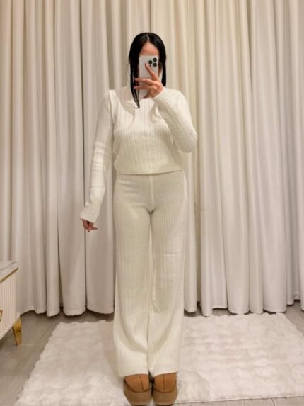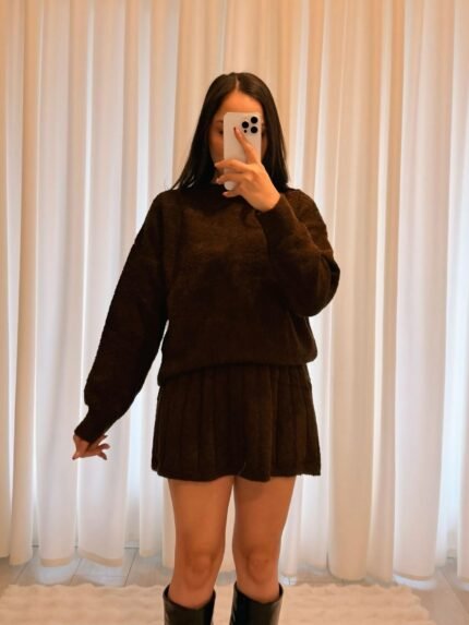 Modern ve rahat şıklığı bir arada sunan bu kahverengi takım, yumuşak dokulu kumaşı ve sade tasarımıyla günlük stilin vazgeçilmez parçalarından biridir. Rahat kesimli üst parça belden bağlamalı kuşak detayı sayesinde feminen bir siluet oluştururken, geniş paça pantolon gün boyu konfor sağlar. Zamansız rengi ve minimal formu sayesinde hem günlük kombinlerde hem de ofis şıklığında rahatlıkla tercih edilebilir. Sneaker, bot ya da topuklu ayakkabılarla kolayca kombinlenerek farklı stillere uyum sağlar.