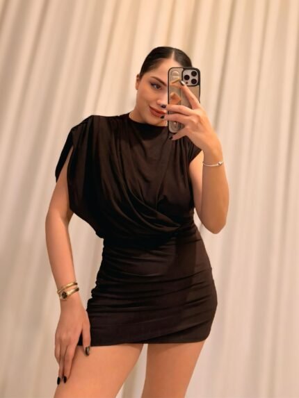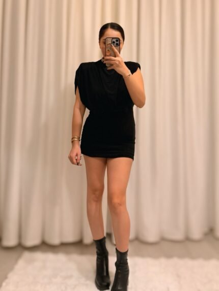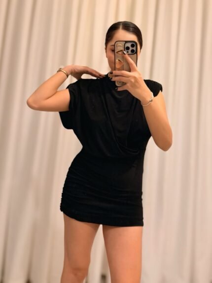 Vatkalı Detaylı Elbise – Siyah