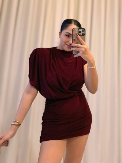 Vatkalı Detaylı Elbise – Bordo