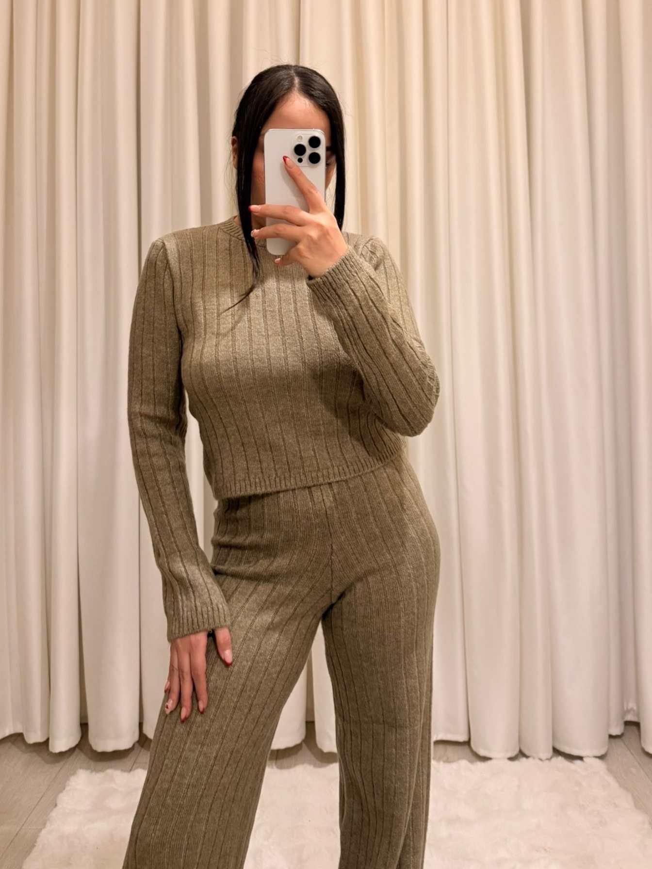 Pantolonlu Triko Takım – Vizon