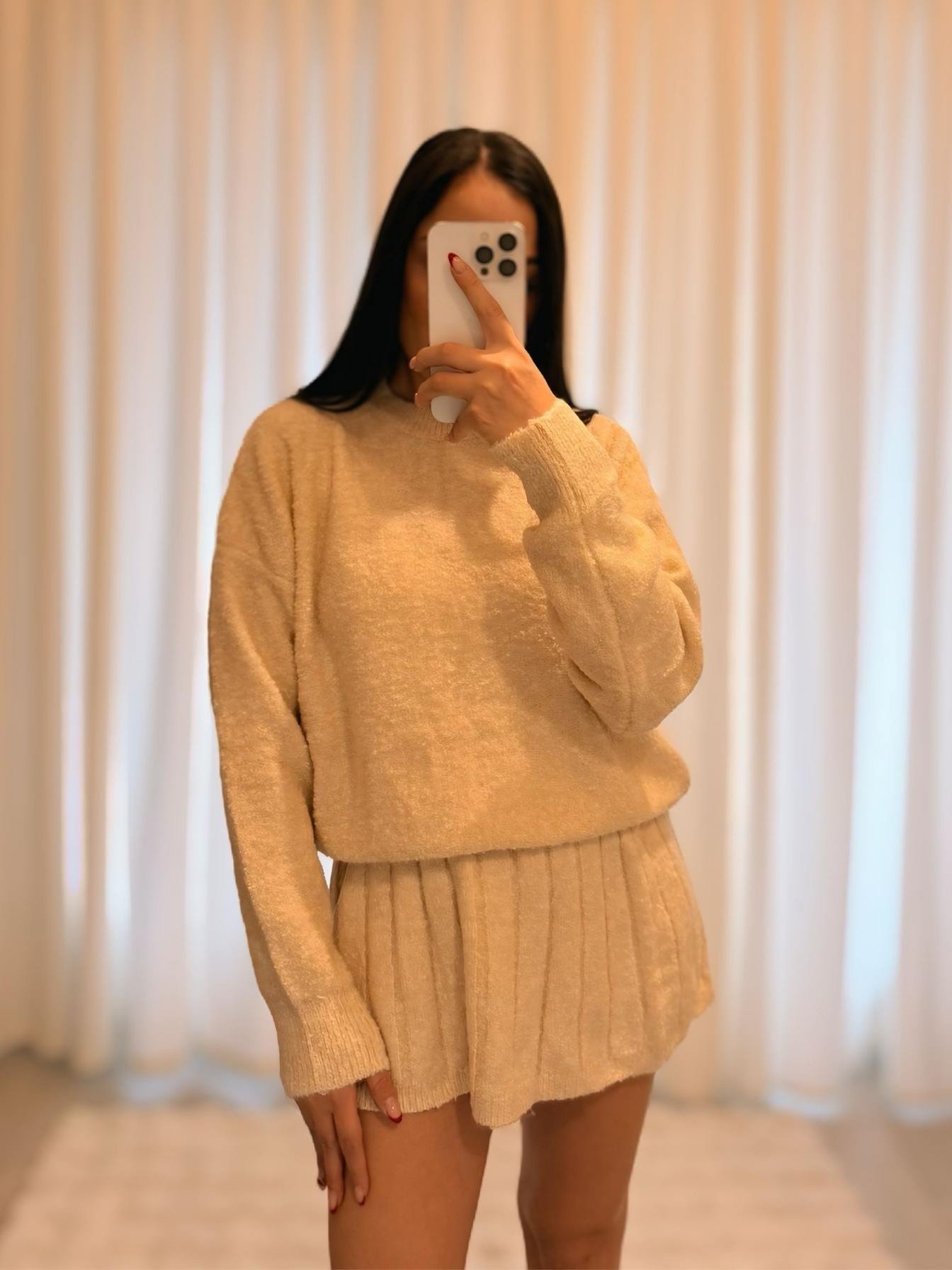 Rahatlığı ve şıklığı bir arada sunan bu bejtriko takım, yumuşak dokulu kumaşı sayesinde gün boyu konforlu bir kullanım sağlar. Bisiklet yaka triko üst parça sade ve zamansız bir görünüm sunarken, lastikli bel yapısına sahip triko şort modern ve rahat bir stil oluşturur. Minimal tasarımı sayesinde ev şıklığından günlük kombinlere kadar geniş bir kullanım alanı sunar. Sneaker, bot veya terliklerle kolayca kombinlenerek her mevsim şık ve rahat bir görünüm elde edilebilir.